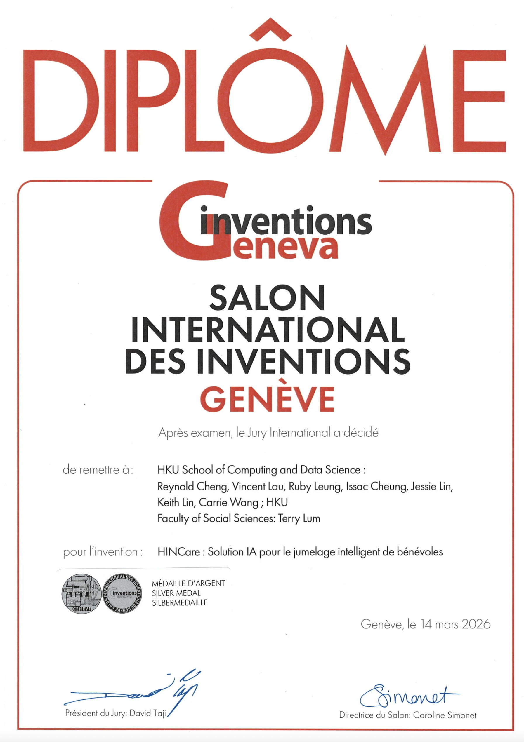 We are proud to announce that the HINCare project has been awarded a Silver Medal at the 51st International Exhibition of Inventions of Geneva.